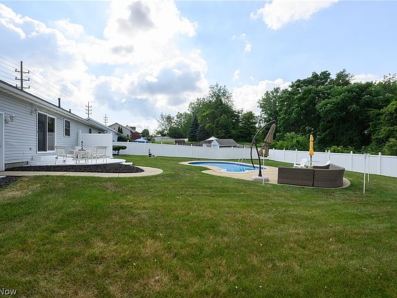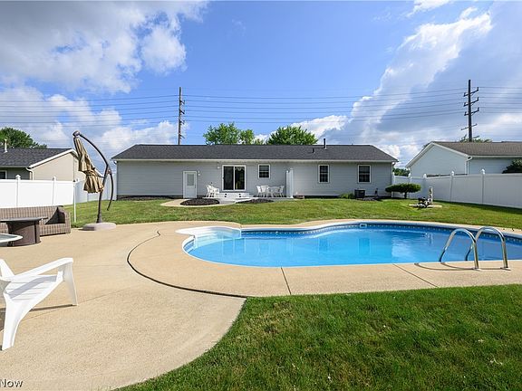 WOW! Do NOT miss your chance to own this meticulously maintained ranch in the heart of Perry Local School District! When you enter the front door you will be greeted by the open concept of the living room as it flows into the dining area and fully applianced kitchen with a vaulted ceiling and plenty of natural light. Down the hall you will find first floor laundry, a full bathroom, and 3 spacious bedrooms including the primary bedroom, complete with its own private bathroom. Make your way downstairs to find over 500 square feet of finished space including an unfinished side with plenty of storage and access to the utilities. The sliding glass door off the dining area leads to a beautiful oasis of a backyard completely enclosed by a white vinyl privacy fence to enjoy your gorgeous inground pool in peace! Major updates include a roof in 2019, AC in 2021, pool liner in 2020, and brand new LVP flooring in the eat-in kitchen. Call today to schedule your private showing before it's too late!