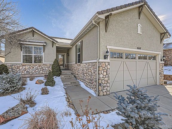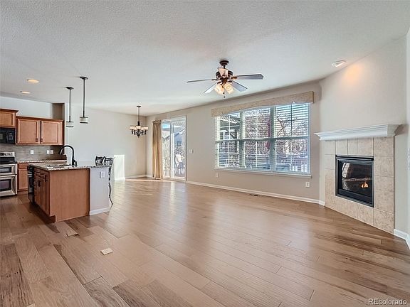 One of a kind Arapahoe Model in the highly sought after Anthem Ranch 55+ neighborhood. This favorite floorplan offers an open floorplan, no stairs, renovated kitchen, extended wood flooring, extended and covered deck. This home offers 2 bedrooms, a study/office, family room with cozy gas fireplace, open kitchen with lots of counter space for entertaining, gorgeous backsplash, under cabinet lighting, eat in breakfast bar, and separate dining area and lots of upper and lower cabinets with rollouts. Freshly painted interior, Stainless steel appliances, washer, dryer are included. Upgraded carpet and padding, ceiling fans throughout, utility sink in laundry room, LG washer and dryer and coat closet and extra cabinets. Very spacious primary bedroom with renovated bathroom with new mirrors, granite counters and huge walk in closet. 2nd bedroom has a full bath adjacent and extra linen closet and hallway coat closet. Some mountain views from the front of the home and back deck is perfect for entertaining and cool in the afternoons. Xeriscaped yard for easy maintenance. Don’t miss the 30,000 sq ft recreation center, indoor/outdoor pools and hot tubs, indoor walking track, fitness classes, billiard room, library, dance lessons and indoor and outdoor concerts throughout the year. Over 130 clubs and over 48 miles of trails around the neighborhood. Take a free tour while you are visiting the neighborhood.