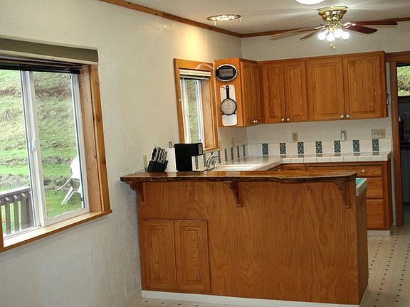 2 Large picture windows facing North with view of Medford. Dining room has oak floor and propane stove. Upgraded kitchen with tile counter. Upgraded bathroom has walk in shower.