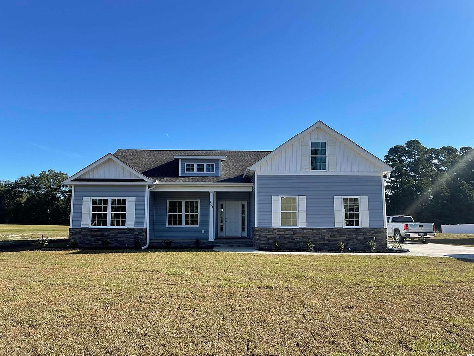 This is the Sullivan Plan, currently under construction and is located on .81 acre homesite. Home features upgraded laminate flooring throughout main living areas and master bedroom, tile in wet areas and carpet in all other bedrooms. Foyer and Dining will have wainscoting and extra lighting has been added to the living room and master bedroom. There are 3 bedrooms on the first level and Bonus Room/4th Bedroom with a full bath upstairs. Kitchen has stainless steel appliances, quartz countertops, subway backsplash tile and staggered white cabinetry that make cooking in your new home enjoyable. The master suite, separate from the other bedrooms, includes a large shower, a double vanity, large walk-in closet and 2 linen closets. Enjoy the beautiful wooded view from your back porch. Pictures are of the same model built elsewhere and may have different features.