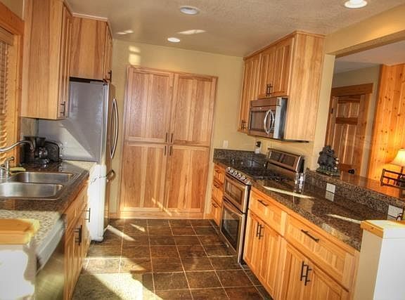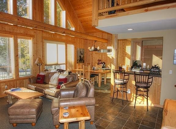 Chalet offered turn key fully furnished with high end furnishings. 3 bedroom + loft. Picturesque views backing to serene creek. Updated & upgraded throughout. Kitchen offers newer high end stainless appliance, granite counters & breakfast bar.Sunny nook.Spacious great room with floor to ceiling stacked rock fireplace & offered fully paneled.High end washer & dryer included. Updated baths with master including walk in tiled shower. Opened loft /office Expanded deck includes BBQ with gas. Oversize HVAC system