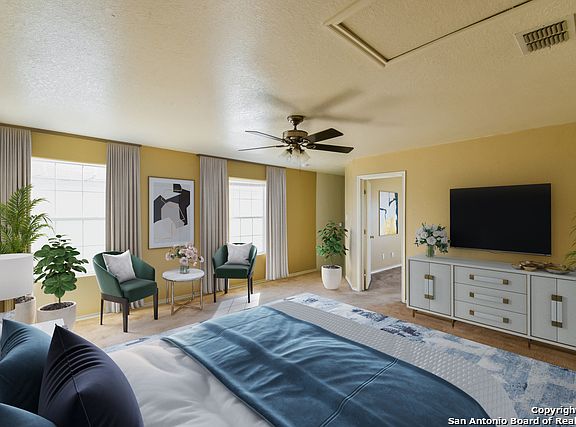 This San Antonio two-story home offers a loft, cultured marble master bath vanity, a master bedroom walk-in closet, and a two-car garage. "This home has been virtually staged to illustrate its potential! Thanks for viewing!"