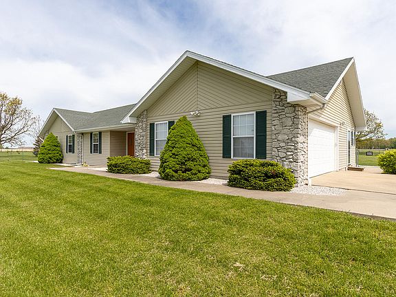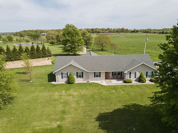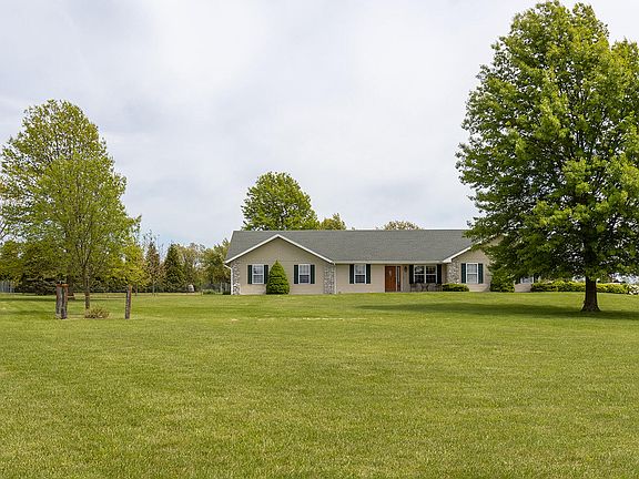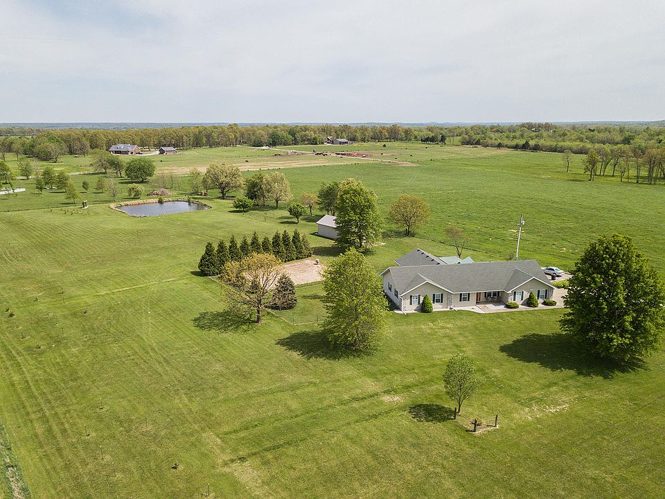 This home has everything you could ask for! On over 5 lush, green acres, this single-level updated home is all about spectacular views. Enjoy a golf course view in the front and a beautiful man made pond towards the back of the property (complete with a new elegant pergola with bench and honeysuckle for aromatic turtle-watching), just behind a shop with its own electricity! Perfect for multi-generational housing, there are TWO master suites with walk-in closets (one is completely handicap accessible with it's own heating and cooling, water heater and door to the patio), and TWO living areas! The seller pulled out all of the stops when it came to updating this home--all new paint, all new appliances (refrigerator, washer and dryer, water-softener stay!), refinished cabinets with new hardware, built in-spice rack, all new door knobs, new light fixtures (some), all new faucets, new rock walls in living areas with modern electric fireplaces and stylish sliding barn door! Outside you'll find a paradise for gardeners, entertainers and wildlife lovers. The new large multi-level patio has substantial wood beams and a metal roof. To the left there are raised garden beds (with strawberries, asparagus and rhubarb) and further back on the property is an orchard with cherries, peaches, apples and crabapples (grapes in front of home). Seller has also planted 200 trees. As for wildlife, in addition to turtles, deer, geese, turkeys, owls and hummingbirds visit the property. The home is energy-efficient with all LED lights, an extra insulated crawlspace, insulated pipes, and new tankless water heater for inlaw suite. Livestock is allowed. As added bonuses, there is a 6 mil vapor barrier under the house (both sections/two crawlspace entries), the home is wired for ADT security, some of the closets have motion activated lighting, ample storage and electrical outlets, an attic fan, and a new sump pump. See the property in person to experience the breathtaking views yourself!