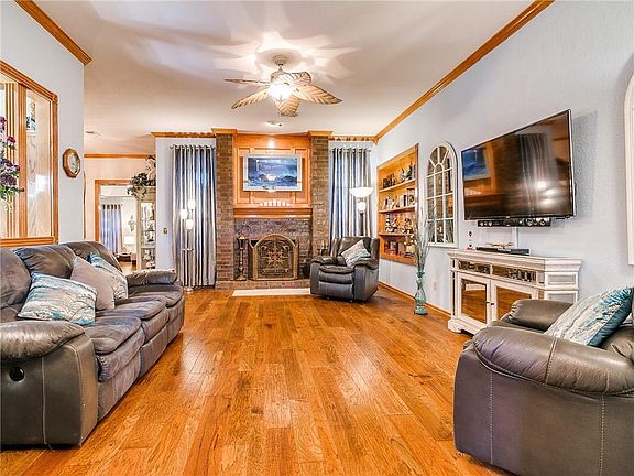 BRAND NEW high end natural stone counter tops, stacked stone back splash, stainless appliances, real wood floors, and carpet. You are going to keep finding things to love once you walk inside! The first of two living areas features high ceilings, built-ins, a fireplace and those gorgeous wood floors! At the back of the home is the second living area featuring views of the tranquil backyard. In the kitchen, there is so much to take in, so take your time! Be sure to check out the fun eat-in kitchen booth overlooking a window into the first living area, and the pantries on both sides of it. On to the master suite. The room itself is huge! The master bathroom offers plenty of space, with a shower, jetted tub, his and hers closets, and large vanity setting with ample storage space. An underground 6 person storm shelter and lifetime shingles give you peace of mind. You won't find another property quite as nice as this one, so don't let another day pass by without scheduling your showing.