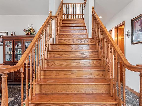 Welcome to this stunning home nestled on 5 private acres. This custom brick/stone home 6 Bedroom 5 Full & 2- 1/2 Baths. 10 ft ceilings throughout main level except two story 20 ft great rm with wood floors, wet bar. Large kitchen, features granite countertops, ctr island, custom cabinetry, pantry & Breakfast Rm. Main floor laundry room. Private deck off main floor master suite w/separate shower/tub, walk in closets & double sinks. T- Staircase up to the second story w/4 large bedrooms, 2 full baths w/amazing views. Lower-Level w/wood burning fireplace, large recreation & living room w/walk out to back patio. In-law suite w/full kitchen, eat in area, laundry, full bath & bedroom. 3 Car attached & 3 Car detached w/oversized doors. Zoned HVAC, 2 Water Htr, 2 Decks, Central Vac. Off detached garage, Electric Box/Future Pool.