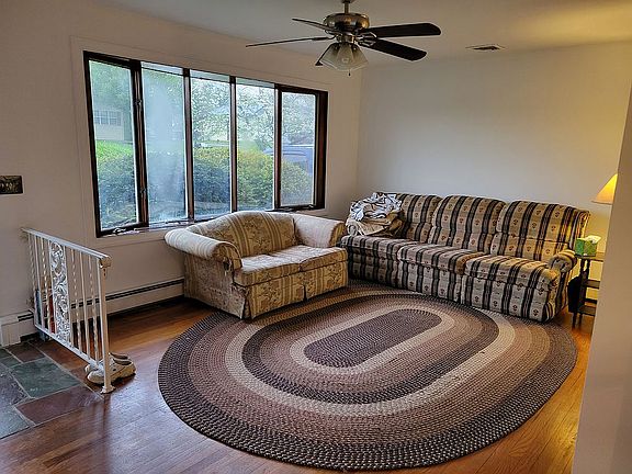3 bedroom brick ranch. 2 car garage . Eat in Kitchen with sliding glass door out to patio with roof. Central air. Oil heat. Full basement. In a quiet secluded neighborhood with a beautiful view in Parkland school district.