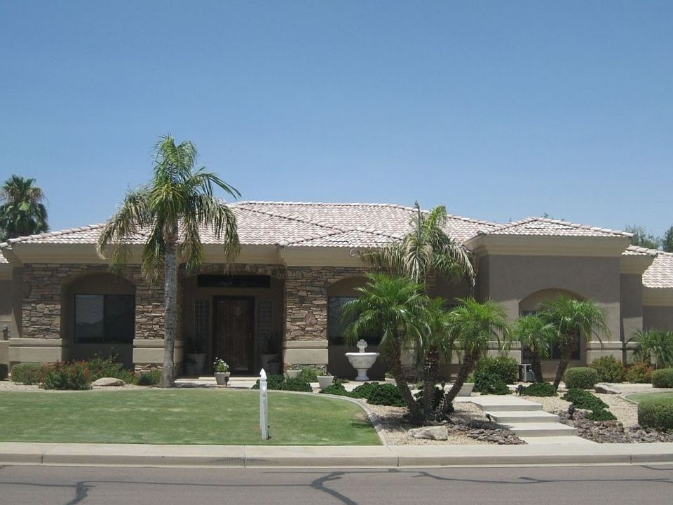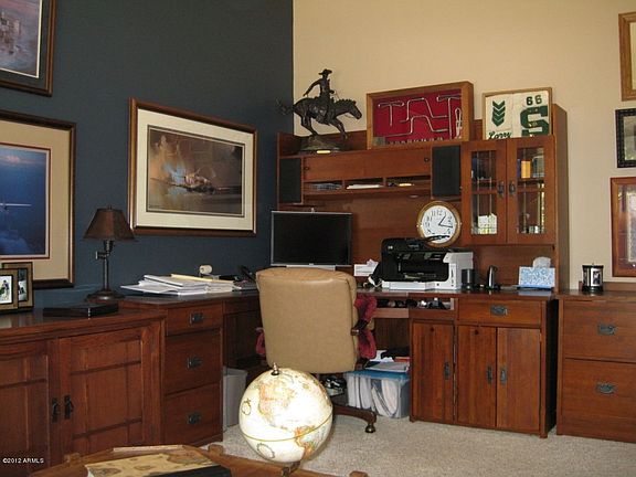 Elegant Custom Home Built by Robin Mickelson-2 x 6 construction,Colorado Stone, Sand finished exterior, Hand Troweled interior walls in Sante Fe Finish,Custom Iron front door w/' inter changeable glass & screen, 14' lighted coffered ceiling in living room 12' flat ceilings in main living area's & 10' ceilings in guest room & office. Solid slab granite throughout home, including laundry, black granite sinks in kitchen & laundry, SS appliances, trash compactor, master suite acoustically insulated walls,huge master closet, master bath snail shower w/ 3 heads & jetted tub,extensive flagstone walkways, pebble tec pool & water feature, fiber optic lighting, outdoor gas fireplace, built in bbq, enormous covered patio,extended 3 car garage w/insulated doors& a gorgeous detached RV garage/workshop