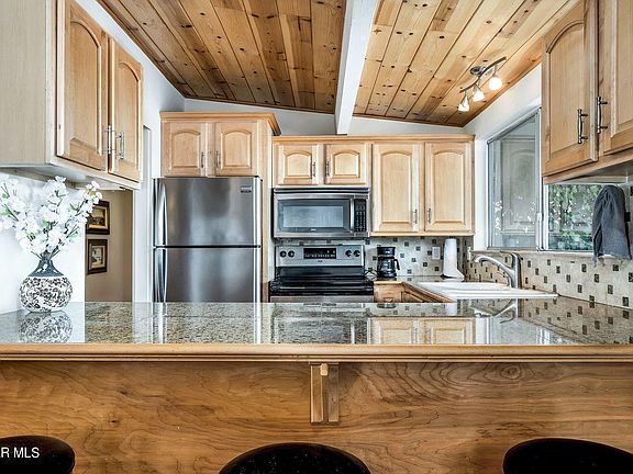 Mid- Century designed condo in a great location of community. This unit features, a open floor with beautiful wood floors, high wooden vaulted ceilings, granite kitchen counters, counter dining, plus formal dining, open to family room, 2 full baths, 2 large bedrooms, washer and dryer in unit, slider doors out to expansive patio with BBQ. Perfect for entertaining or just relaxing taking in the spectacular mountain views or take a swim in the sparkling nearby pool. This condo is offered fully FURNISHED. It is located just minutes to El Paso, restaurants, shopping and more