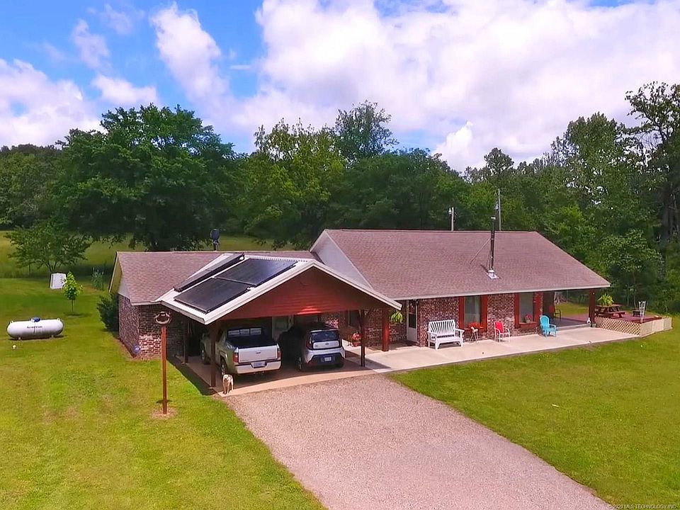 Unusual! Nestled in a quiet, scenic valley is this comfortable 4/2 home on 11 acres with all the amenities of country living yet just 20 min from Tahlequah City Hospital or downtown Stilwell. Large rooms, vaulted ceiling in den & lots of windows gives an open, natural feeling along with huge laundry/pantry room as added bonus. Plus there is the security of a year-round spring, solar electric and propane generator in case of emergencies. It's the best of both worlds!