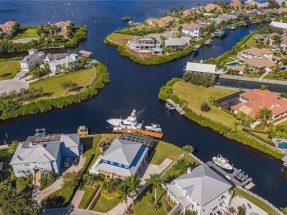 Poised on the opening of a canal with immediate access to the Manatee River, this stunning Key West-inspired waterfront home has been remodeled to satisfy the aesthetic of today's waterfront homeowner. The seller has spared no expense to craft a heaven on Earth that embraces the beautiful location. Breathtaking water views are seen throughout the home, accenting a thoughtful, multi-level floorplan with open living, hickory wood floors, and nautical tones. An eat-in chef's kitchen is connected to family living and dining and offers a six-burner gas range, beautiful leather textured granite countertops, full wet bar and gorgeous solid wood, soft-close cabinetry. A large family room is the perfect gathering locale year-round with gorgeous stone fireplace and windows that overlook lanai and water. You'll have plenty of space for guests or family with four bedrooms, four full bathrooms, and an optional fifth bedroom/study ensuite on the 1st floor. Outdoor living is beyond compare with multiple balconies, decks and an oversized paver pool lanai that instantly soothes a worried mind. Survey the landscape from an upper-level open-air balcony, have coffee on the main-floor screened balcony with tongue-and-groove ceiling, or take a dip in the pool. Easy access to the Manatee River and a private reinforced dock with composite decking, wrapped pilings, 100amp service, water and 13K-lb lift makes cruising to the Gulf a breeze. An additional item that adds to the home's allure is the massive laundry room with dual washers, dryers and abundant cabinetry. The seller has made this property secure and energy efficient with brand new turtle glass impact windows and doors along with Iceynene spray foam insulation, metal roof (2012), whole-house generator, two electric tankless water heaters, LED lighting throughout and top-of-the-line security system. Other features of note include new cobalt blue Hardie board siding that gives the home it's Key West flair. No deed restrictions mean you can bring all your toys and enjoy more flexibility. This home offers an air-conditioned three car garage with workshop and extended parking pad for RVs plus additional parking pad. A drywalled shed with electric and A/C unit provides additional storage. The list goes on and on, ask for the property update sheet to read about all that's been done to this showstopper home.