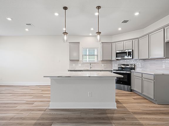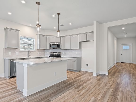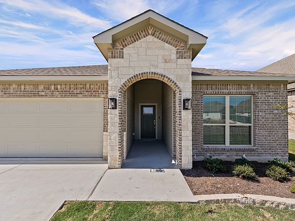 Welcome to 4619 Allison, a thoughtfully designed 4-bedroom, 3-bath home nestled in the scenic Three Creeks community of Belton, TX. Spanning 1,844 square feet, this home combines comfort and style with finishes that exude understated elegance. Inside, you'll find Bluff shaker-style cabinets paired with Terra Sol quartz countertops and a striking Renzo Dove picket backsplash in the kitchen, all complemented by enhanced vinyl plank flooring and soft Whisper carpeting in the bedrooms. Bathrooms are appointed with Glacial quartz counters and timeless Fair tile in the showers. Lighting throughout is warm and inviting, with LED downlights and brushed nickel fixtures, while natural brass pendants bring a modern touch to the kitchen island. The home's exterior is equally charming, featuring Austin White Sawn stone, Porter brick, and siding in a soothing Rushing River tone, accented by a Craftsman-style entry door in Rosemary green. A refined blend of form and function-this one is ready to welcome you home.
