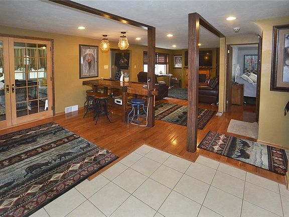 Sleek Contemporary Rustic Look! Open Floor Plan! Cozy Living Room with Bay Window! Hardwood Floors, Gas Fireplace! Wood Breakfast Bar In Newer Kitchen w/Farm Sink, Granite Counters, Gorgeous Tile Back Splash, Stainless Steel Appliances, French Doors to Family Room w/Vaulted Ceilings! Dining Room Bar can be moved to create more space! First Floor Master Bedroom and Bath! Fabulous Walkout Game Room with New Carpet & Stone Fireplace! Great Fenced Level Yard & Patio! Minutes to shopping, Dining, Turnpike, 376, and Murrysville! WOW!