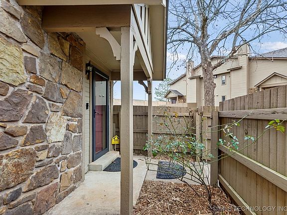 Updated condo in prime location of South Tulsa Jenks Schools. Updated flooring throughout, fixtures, granite throughout, stunning fireplace & remodeled bathroom. An additional second living space for an office is located off the living room. A large walk in closet is offered wtih the primary bedroom that also has a private balcony. This secured and gated community has access from both Yale and 91st for easy access to the highway and lots of south tulsa retail. HOA community pool & club house.