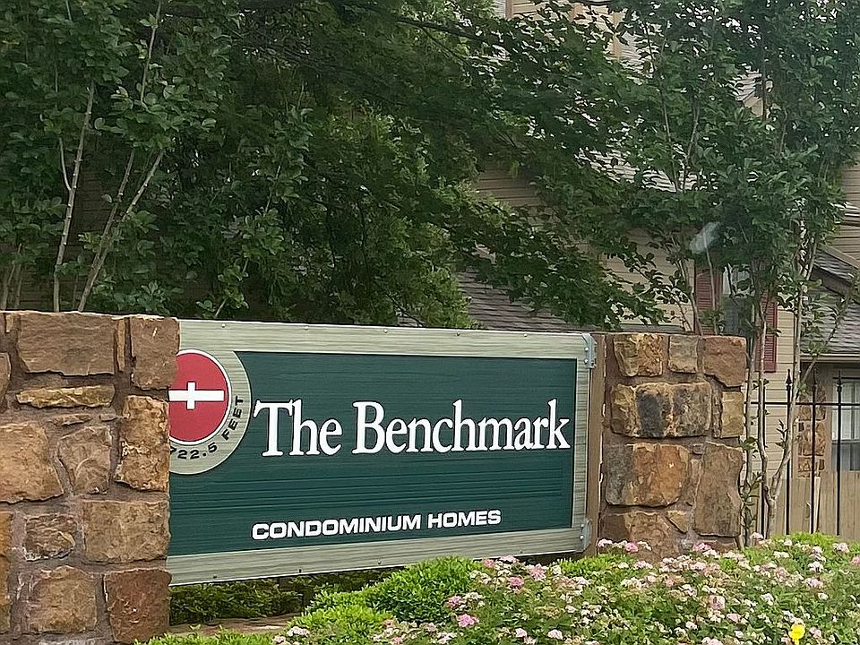 ONE LEVEL DOWNSTAIRS. SOUTH TULSA DESIRABLE BENCHMARK GATED CONDO COMMUNITY UPDATED. Vinyl Wood flooring, new hot water heater 2022, lighting and fixtures replaced 2022. New heat and air in 2009. New deck 2013. Stained concrete porch. Stainless steel appliances. Real granite countertops. New paint 2022. New light fixtures and fans 2009. Close to mailbox and dumpster. Corner house. Covered Parking spot is directly in-front of unit. All appliances stay. Private courtyard. Close to the pool, mailboxes, and more!