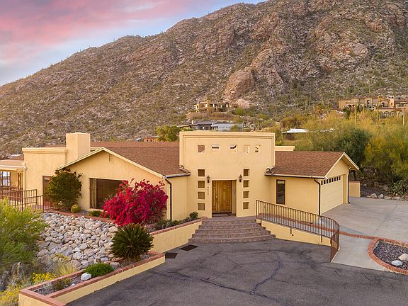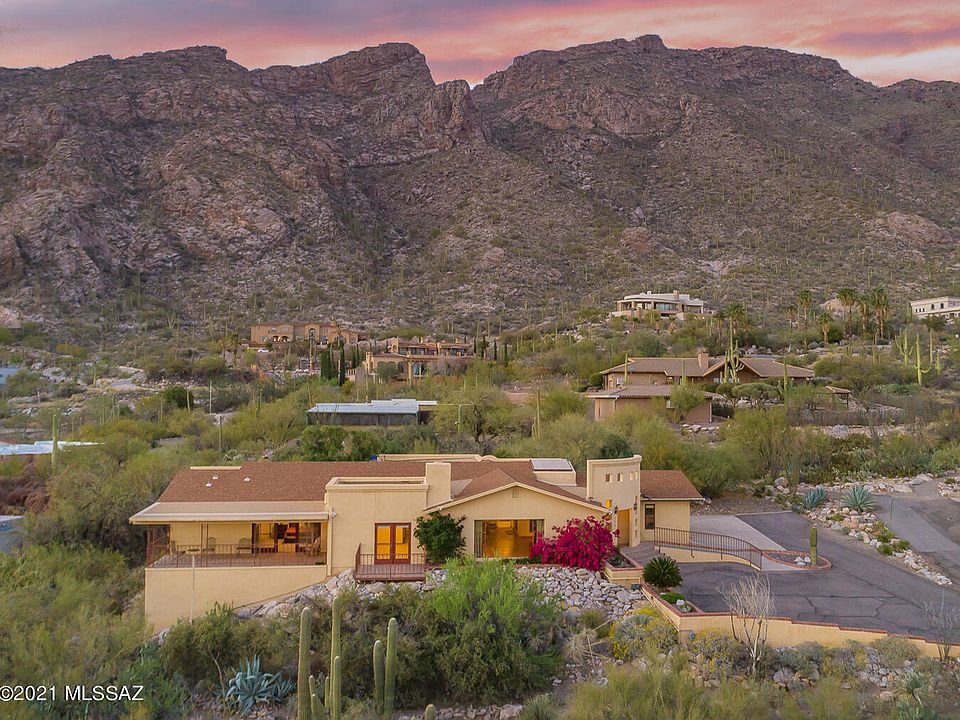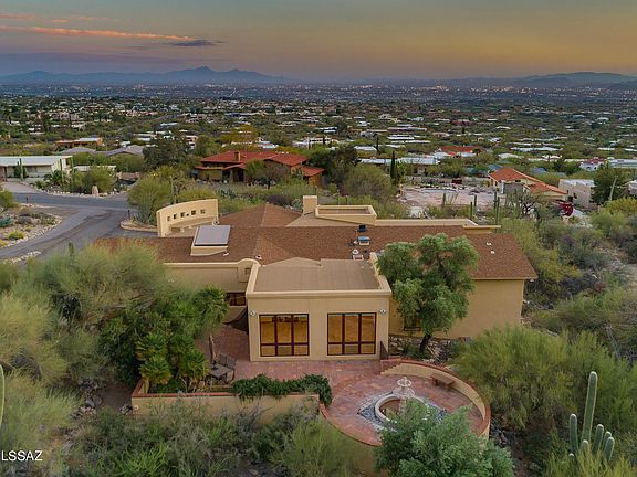 Amazing home in Catalina Foothills located at one of the best view points to see city lights and stunning Mountain views. This home has many upgrades,including,Pella windows and doors*. The luxury kitchen features Island seating with African Granite counter tops, Stainless Steel appliances, double wall ovens, 36''cooktop and a wine fridge. The Dual Master suite bedrooms each have their own private decks with jaw dropping views of cityscape and light show at night. One Master suite has has Jet Spa Tub and spacious dressing room. The living room has wood floors, fireplace and also a floor to ceiling picture window that frames the view perfectly.The home has a newer addition with high ceilings and with beautiful newer Pella Window that flood the room with light and (see more)