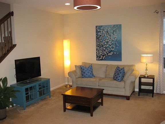 Spacious 4 BR/2.5 BA home features 9' ceilings, 42" cabinets, beautiful HWD flrs on 1st floor. Huge family room above 2 car garage. Kitchen eat-in area w/sliding glass door walk-out to deck. Master suite w/soaking tub, sep. shower, dual sinks and large W-I-C, 2nd floor laundry 3 additional BR (2 W-I-C). Full unfinished look-out basement. Community clubhouse w/pool & fitness center. Short walk to elementary shcool.