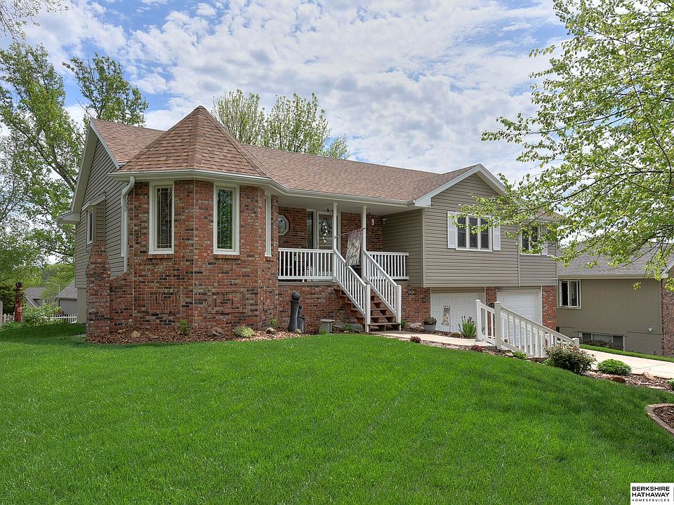 OPEN HOUSE 5/11 Sat. 1-3. PRE-INSPECTED. Awesome location to schools, restaurants, Zorinksy Park & interstate access. Beautiful landscaping, maintenance-free vinyl siding, brick accents, white railing & cul-de-sac location. Cozy front-covered porch! Floor-to-ceiling brick fireplace & wood floors. A surprise sitting room awaits you. Kitchen w/tons of cabinets, solid surface ctr, wood flooring, tile backsplash, & eat-in dinette. Great room is just that, GREAT, w/vaulted ceiling, CF & a wood-burning fireplace. Nice-sized Primary Suite w/3/4 bath, 2 sinks, W/I closet, big shower & a private water closet. Other 2 main floor Beds are nicely sized. Unfinished LL gives you options to finish or great play space for kids. New: A/C 2020, Heating 2022, Roof 2019-Hail Resistant, H2O Heater 2007. Big deck (to be stained) for your outdoor entertaining. H20 Softener, W/D, Refrig & H20 Softener included. This home has been cherished through the years and is ready for a new owner & new memories!