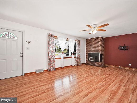 Beautiful brick ranch home in a great neighborhood location. Laminate floors throughout, updated kitchen with Corian counters, gas range, and new refrigerator. Spacious primary bedroom with addition to rear. Handicap accessible features, pellet stove, basement recently waterproofed and plumbed for bath. Heat pump with gas backup, and gas tankless hot water heater. Rear fenced yard and nice patio area.