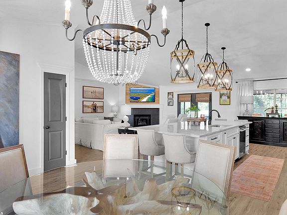 Renovated and owned by a custom home builder and interior designer this house is a show stopper! No room was left untouched as you can see by the shiplap, trim in every room, and custom elements you will find throughout. Upon entering the house you will see a gorgeous kitchen featuring a 12'x5' island with quartzite stone tops with 3 designer pendants hanging above. The open floor plan is inviting through the kitchen and living room which showcases an oversized mantel and natural stained cypress wood. The home has new interior doors, exterior doors, and hardware. The flooring was upgraded to luxury vinyl plank throughout the entire house (no carpet), 42" upper cabinets featuring soft close doors AND drawers. Designer light fixtures and high end Kitchenaid appliance package. All plumbing fixtures are new, new roof in 2021 and TWO new hot water heaters in July 2023, AC unit replaced in 2019! Irrigation system on well water and bronze screened in porch is all as of 2022. Community features pool and BOAT RAMP into the ICW. Captains Cove is known for their golf cart parades, best Halloween on the island and many community events. Please see complete list of upgrades and roof certificate in the docs. Seller is a licensed realtor in Alabama.