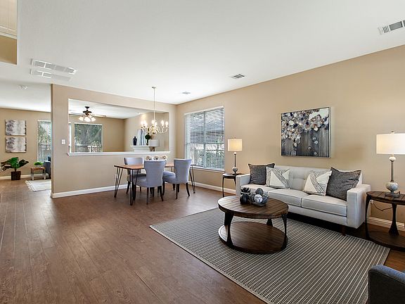 Sparkling 2 story home with well-manicured lawn screams curb appeal coupled with a backyard retreat in the highly desirable South Austin Sendera neighborhood! Home offers a spacious and open concept layout with all 3 bedrooms upstairs plus a game room and 2.5 bathrooms. The main level has 2 living areas and 2 dining spaces. Absolutely no carpet located throughout the house; replaced with luxury vinyl planking. Home is dual zoned with two HVAC systems less than 10 years old. Recent main suite bathroom updates include subway tile wall at shower and garden tub. Front and back yards include mature shade trees that provide ample relief from the Texas heat. Outdoor bonus includes extended covered patio allowing plenty of space to relax or entertain guests. Recently installed craftsman style garden shed for additional storage space outback. Walking distance to restaurants, shopping, highly rated schools, and the Lady Bird Johnson Wildlife Center. Less than 15 mins from downtown! Google fiber is now available. Offering an appliance package incentive with an acceptable offer. The stage is set for your personal touches to call this place home!