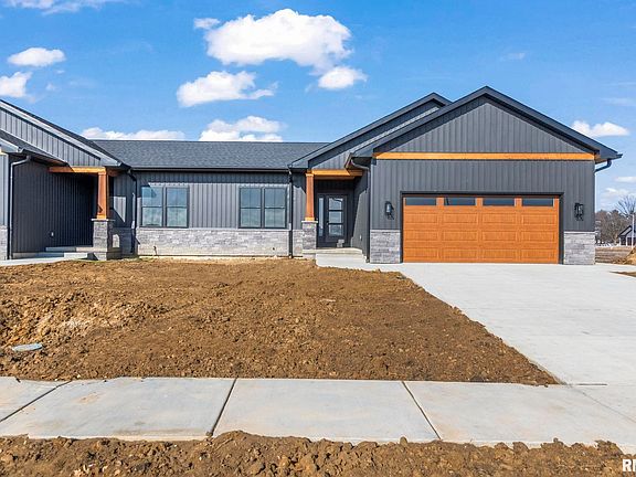 Gorgeous new construction, attached home in popular Sloan Crossing, west side of Springfield/Pleasant Plains School District. Stunning curb appeal w/stone & cedar columns on the covered front porch. Inside you will find an open concept, 9 ft ceilings throughout the main level, top of the line waterproof/scratch resistant Ultracore flooring made by Paramount & trendy fixtures/color schemes. Beautiful kitchen boasts Quartz countertops, Prairie Pride custom cabinets, island w/breakfast bar, an informal dining area and a large 6 ft x 7 ft walk-in pantry. Gas fireplace in living room. Walk in 5 ft x 5 ft tiled shower in the primary bedroom & quartz countertops in both bathrooms. 14 ft x 14 ft covered back patio that is prepped to be screened in if buyer wishes to do so in the future. Full unfinished basement is stubbed for a full bath and basement includes egress window for future bedroom. Quality built home w/2x6 framing on all exterior walls. Kulek Construction, LLC.