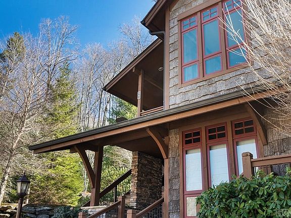 Light and Bright and Beautiful Inside and Out, this thoughtfully designed 3BR/3BA unit at The Birches of Wildcat Cliffs leaves nothing to be desired.  The owners of this upper unit condo with elevator access added additional windows to capture the glorious mountain sunlight, further showcasing the beamed cathedral ceilings and board and batten walls in the open living and dining room space. Fabulous views of Shortoff Mountain are visible through the breakfast area windows as well as guest bedroom windows.  The master bedroom suite is comfortable and restful, with a vaulted ceiling, walk-in closet and bath with both walk-in shower and jetted tub for relaxation.  The guest area is in a separate enclave, to maximize privacy.  Two beautifully constructed fireplaces lend themselves to cozy retreats during chilly mountain nights.  Enjoy nature from the screened porch and entertain friends and family while using the grilling deck or open kitchen area with breakfast bar, where friends can sit and chat while you entertain.  A single covered carport is a bonus and golf carts can easily come and go throughout the community.  Come see this wonderful and active club community and its friendly members and enjoy the fabulous amenities it offers.  Golf, croquet, tennis, pickleball, a newly renovated fitness center and indoor pool area and Camp Wildcat for family members during the summer.  And...the best club chef on the plateau!  Club membership is mandatory but the investment is so worth it!  You will love it here!
