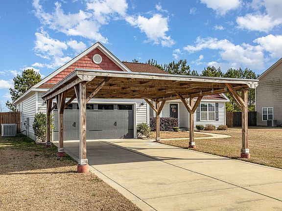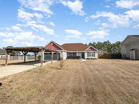 Get ready to step inside this better-than-new ranch home in sought-after Carolina Oaks, close to all Lillington, Spring Lake, & North Fayetteville, but with Harnett county taxes!. Don't miss all these unique features: Starting with the outside- Roof replaced 2021, fenced-in backyard, custom rear pergola deck, & a 2 car carport (fits large trucks). Once we head inside to the primary bed/bath- 2022 mosaic bathroom tile, 2020 Maple laminate, unique headboard w/hidden compartment for home protection and reading lights, & a built-in desk in the office. The Great room beckons with an expansive open-concept with a fireplace mantel recovered from a Raleigh house built in the 1840's & wired surround sound. The sellers in the last few weeks (2024) have added a new coffee nook (also wired for a future microwave) & kitchen backsplash, the fridge and dishwasher both were replaced in 2022. The garage has an upgraded attic space, a sturdy workbench, & a Murve air filtration system. We can't forget this smart home has light switches & an EchoBee Smart Thermostat that can connect to Apple Home or Alexa.