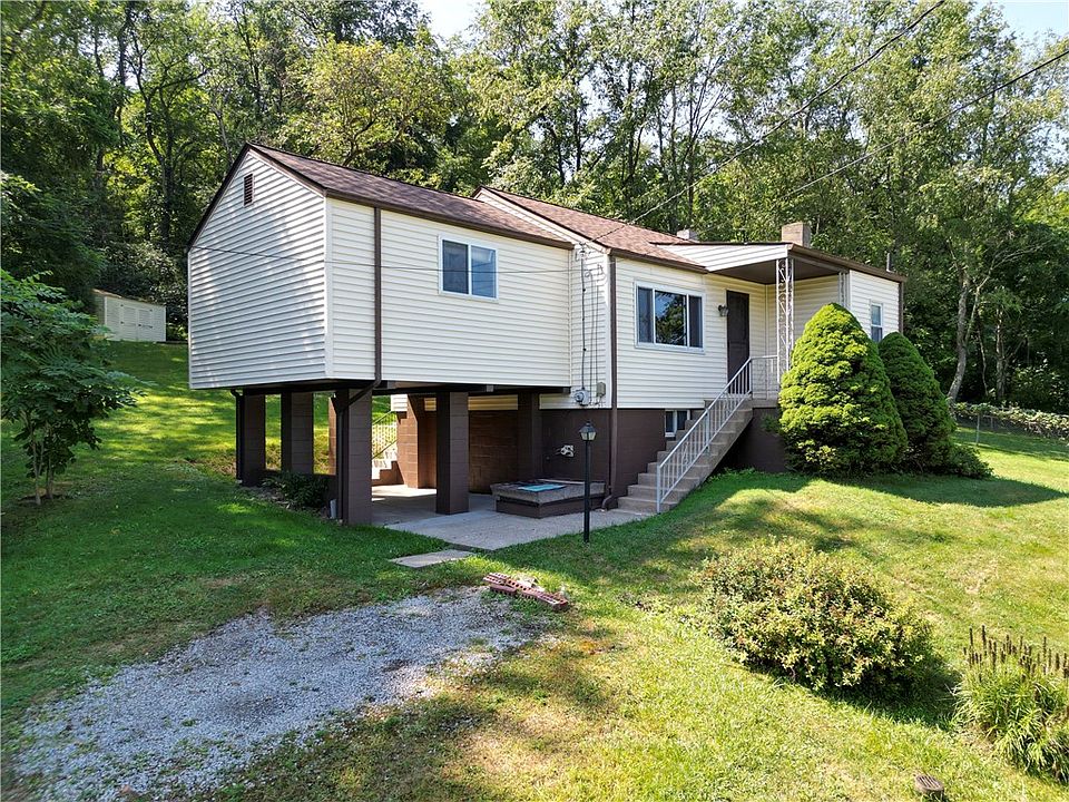 Welcome to 462 Crawford Run Rd, a cozy 2-bedroom, 1-bathroom home that offers plenty of potential. Step inside to find a comfortable living room with wall-to-wall carpeting that continues throughout most of the home. Off the living room is a bedroom and full bathroom, while the second bedroom is generously sized and versatile. The kitchen features an electric oven, with access to both the basement and the backyard. Downstairs, you’ll find a second bathroom and plenty of storage for tools and hobbies. Outside, enjoy a private and spacious backyard with a small porch that steps right out to the yard as well as a decent-sized shed for additional storage. There’s also a covered porch area beneath part of the house with convenient access to the basement.