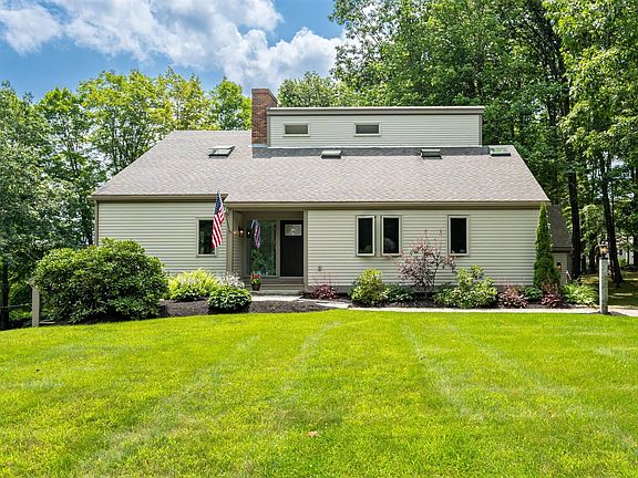 If you have been looking for your own private oasis, you have found it! Spanning 10.6 idyllic acres, this sun-filled contemporary home resides on a beautiful country lane. Sitting on the crest of a hill, this property offers seasonal views, and plenty of space and privacy. Step inside to view over 3000 fin sq ft, featuring vaulted ceilings, wooden beams, and a passive solar design. The open floor plan is flexible, allowing for various configuration options to suit the needs of the residents. It includes 3 bdrms, 2 full baths, plus an office (could be used as a 4th bdrm), and loft. Additionally, there are 2 living spaces, providing multiple options for relaxation and entertainment. The primary suite is situated on its' own floor; featuring a full bath, 3 closets, as well as an adjacent nursery or w/in closet. Dream of owning a horse or farm animals? The garage boasts 2 bays, loft storage above, and 2 stalls in the lower level. The barn/garage is equipped w/ electricity and water, ensuring the necessary amenities for your convenience. The lower field is perfect for a pasture or garden space. Pride of ownership abounds with beautiful landscaping, freshly painted interior and exterior, new barn roof and doors, new gutters, skylights, and a pond feature. FHA propane heat, plus a fireplace and woodstove for those chilly nights. 10 min to Concord shopping, restaurants/ entertainment, and minutes to 202, 89 and 93! OFFER DEADLINE TUES (8/1) @ 3PM.