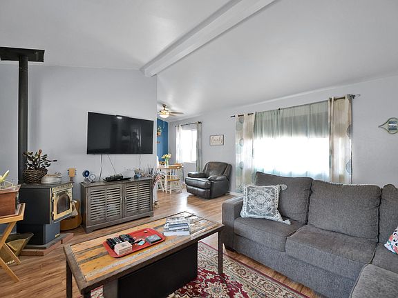 Site built home, 3 bedrooms/1 bath and its a cutie! Built in 1954 and totally upgraded. Open living room with pellet stove , cute kitchen, ample size bedrooms, laundry/storage room and enclosed front porch. Large lot with privacy fence on side yard perfect for the pets. Roof, paint, evaporative cooler, water heater and appliances were all replaced within the last 3 years. Plenty of parking spaces and room to add a garage/carport. Private water company and located just off a paved road. Great investor home as a rental or perfect first time buyer.
