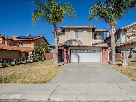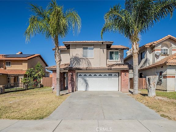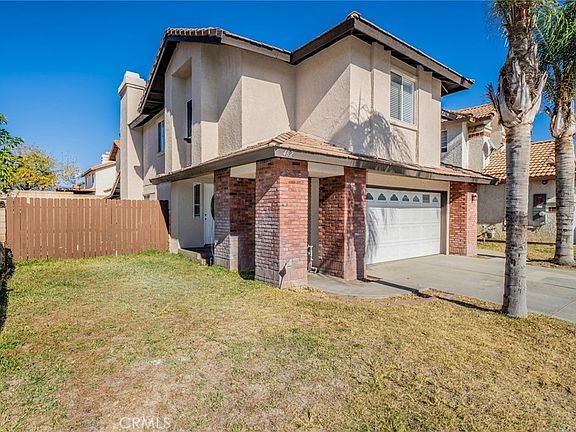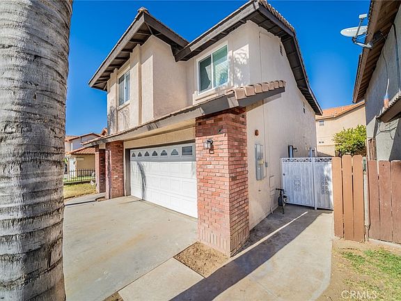 Welcome to this 4 bedroom, 2.5 bath, 1,703 sq ft on a 4,650 lot home located in the highly desirable gated community of California Knolls Sycamore. You are greeted with a covered walkway to the front decorator's door. Upon entering is a large family room with a Vaulted ceiling, Fireplace, and double French doors to the covered patio. The kitchen has freshly painted cabinets, all new stainless steel appliances, Corian countertops, and backsplash and is adjacent to the dining area with a Coffered ceiling and slider to the side yard. Rounding out the first floor is the laundry room, half bath, and direct access to the 2-car garage with extra storage space. The second floor has all 4 bedrooms and 2 bathrooms. The primary bedroom is large with a Vaulted ceiling and en-suite bath with new vinyl plank flooring, dual sinks, and a shower/tub combo. Three bedrooms share a secondary bathroom with new vinyl plank flooring and a shower/tub combo with privacy glass doors. The first floor has matching tile throughout and stairs and the second floor has all new carpeting in hallways and bedrooms. Updates include Brand NEW Exterior Paint, Brand NEW Interior Paint, Brand NEW Carpeting, Brand NEW Stainless Steel Kitchen Appliances, and all NEW Exterior Light Fixtures. Low HOA, conveniently located close to schools and Rialto Marketplace Shopping Center.