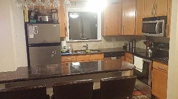 Up for rent is a beautiful 2 bedroom, 1 bath condo with engineered hardwood floor throughout, new kitchen cabinets, stainless appliances, freshly painted and upgraded with granite counters, living room with on-wall entertainment unit with LCD/LED tv bracket included. Enjoy the cold days with a real wood burning fireplace. Safe building with an intercom system and only 6 apartments per building. Unit has two assigned parking spaces, balcony, a tennis court and a playground. Come and see all the upgrades.(Background check and Credit Check required with a processing fee)