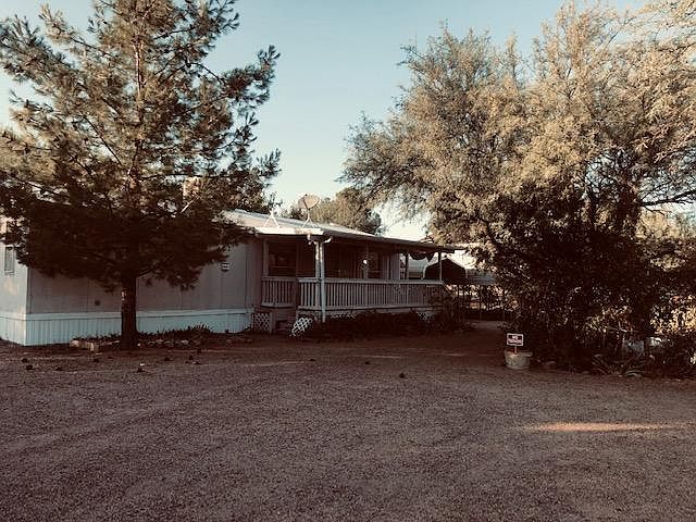2 BR, 2BA Manufactured home on .59 acre. Open concept living room/dining room/kitchen. Good size bedrooms with walk-in closet in Master bedroom. All appliances stay. New Gas stove, New French door fridge, and New 3 ton AC/ furnace, new instant propane hot water on demand. Covered front and rear porches. Double RV carport with plug-in and additional single carport. 3 extra outbuildings - 1 set up as an office and 2 as storage sheds. Landscaped yard with circular driveway. Great getaway at the lake - lots of parking for toys! Only about 10 minutes from Cholla boat launch at Roosevelt Lake. Access to Apache Lake too!