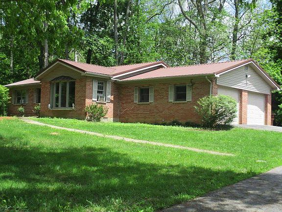 Brick ranch situated on a nice 1.48 acre lot in No. Pendleton Co. Mins from Campbell Co line. 3BR, 2BA, full finished basement w/walkout, wet bar, office and storage area. Hardwood flooring and newer metal roof. 2 car attached garage. Large eat-in kitchen with built-in corner hutch. Tiered deck, tennis court (needs work) or use as additional parking for camper, boat or vehicles. Wooded lot. Mins to US Hwy 27. Home is located in Ducker's Woods but is not part of the subdivision. Home is in need of updates but price reflects allowing buyer to make upgrades* Call today! Great location.