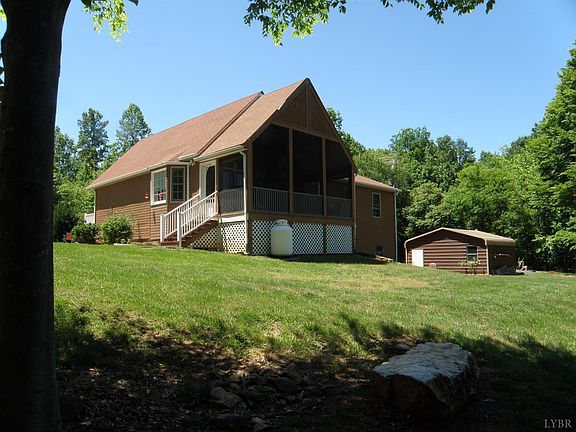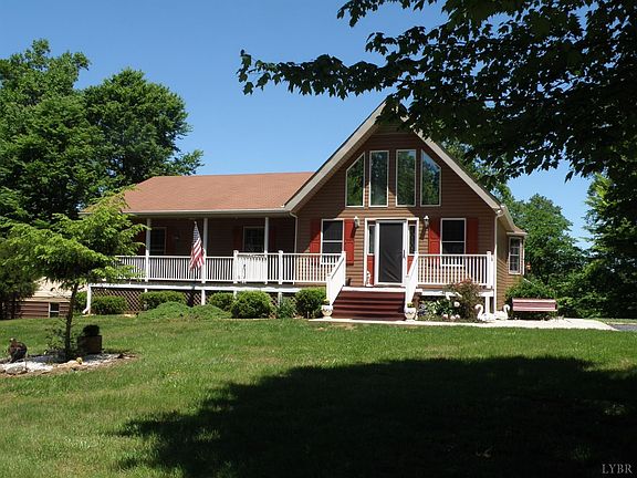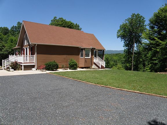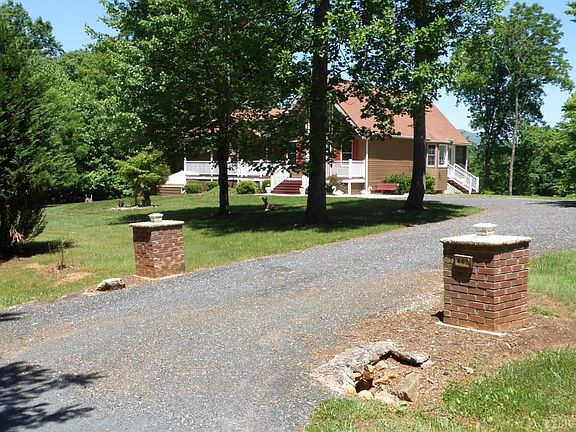 One Level Living in a beautifully maintained home with nice open floor plan; in move-in condition. Beautiful mountain views on 5 acres bordering Harris Creek. Great room with massive stone fireplace and cathedral ceiling, Bay Window in dining area, granite Kitchen counter tops and hardwood floor. Full basement has huge family room and office, another full bath and an unfinished area for storage or workshop. Nice detached 2-car garage/workshop/storage area and large fenced garden space. Privacy and Beauty but only 5 mins. to Food Lion and 10 mins. to Walmart!