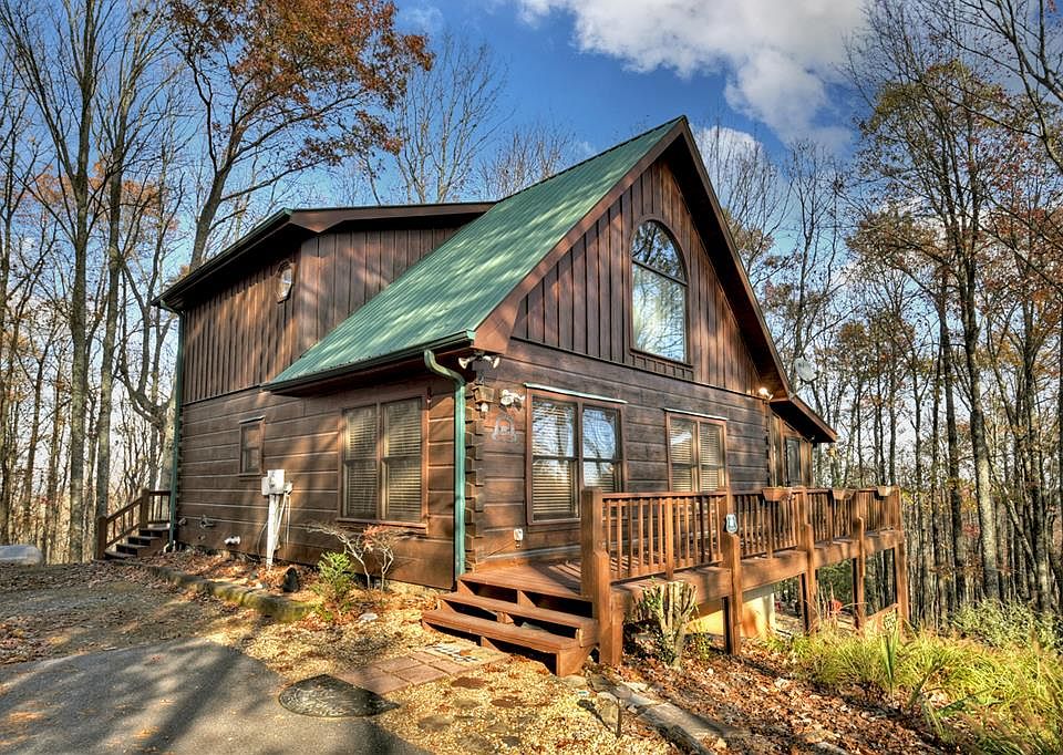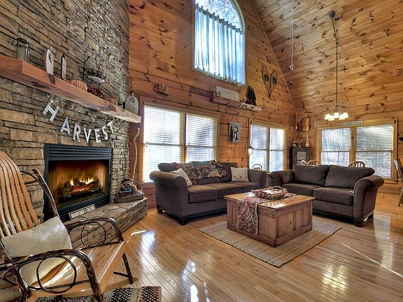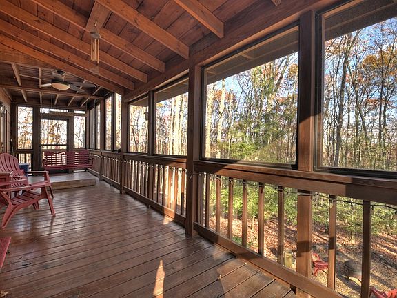 Mountain biking and hiking right outside your door!! Nestled on 1.69 private acres, this stunning 3-bedroom, 3-bath real log cabin offers the perfect blend of rustic charm and modern comfort. A long, private paved driveway leads you to this serene haven, where you'll enjoy easy access to the Fightingtown Creek trail system via a private path—ideal for biking and hiking enthusiasts. Relax on the expansive wrap-around porch, complete with a screened-in section, or gather around the fire pit for cozy evenings under the stars. Inside, warm wood floors and a gas log fireplace create a welcoming ambiance in the open living area. The kitchen boasts stainless steel appliances, and the main level features a bedroom, a full bath with a tub/shower combo, and a laundry room. Upstairs, the master suite is a luxurious retreat with a private balcony showcasing gorgeous mountain views, a jetted tub, a walk-in shower, and a spacious walk-in closet. A cozy loft space adds extra versatility. The terrace level is an entertainer's dream with its own gas log fireplace, game area, wet bar, and custom tile shower in the spacious bathroom. A generously sized bedroom and ample storage complete the level. With a tankless hot water heater, brand new HVAC, and thoughtful updates throughout, this cabin is ready for you to make it your own. Whether you're seeking a tranquil full-time residence, a vacation getaway, or an income-producing property, this mountain retreat has it all!