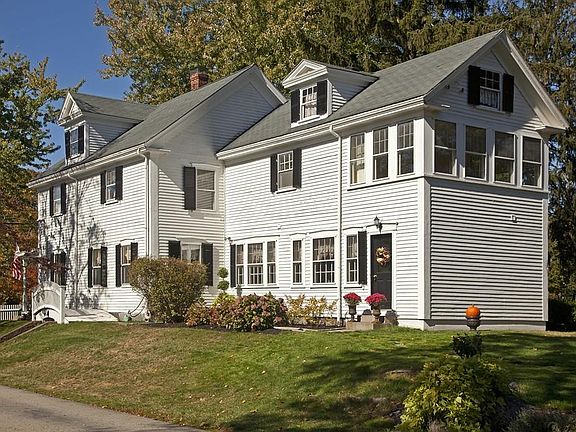 The Charles Hough House built in 1845. This beautifully maintained & decorated home has a wonderful cheery ambiance & lots of space for comfortable living. Beautiful detailed moldings, coffered ceiling, custom built-ins & gleaming wood floors. This lovely home has a large eat in kitchen with stainless appliances & granite counter tops. Sunny family room with built in cabinets, cozy dining room with decorative shelving, elegant living room with coffered ceiling & a large inviting foyer graces the first floor of this home. Second floor has 4 bedrooms including a Master bedroom with a walk in closet. There is also a sitting room with lots of windows and a view of the spacious back yard. 2nd floor laundry. 3rd floor features a home office and bedroom - perfect for an au pair or guest quarters. There is a game room & play room in the finished lower level. Front row seat on the farmer's porch to watch the 4th of July road race. Close to Hingham Square, library, shops & commuter train.