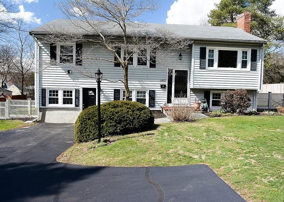 MOTIVATED SELLERS!!!!! This beautiful home is nestled back from the street, close to major highways, Walpole Center, Walpole Mall and Patriots Place. The driveway creative design makes for easy parking and exiting. Newly updated Kitchen features quartz countertop, stainless steel appliances, tiled backsplash and soft close cabinet doors and drawers. Bathroom includes double sink and linen closet. Open concept living room, kitchen and dining is adjacent to a slider which opens up to a cozy 3-season porch. Out the door and you have a beautifully maintained deck landing and yard which comes with a swing-set. Steps to the elementary school or train is a commuters dream. The walk-out basement which has even more square feet boasts a living room and a sunny guest 4TH bedroom. Separate entrance/mudroom is perfect for a home office. Every system has been maintained and updated and then some. Low taxes for Walpole! Perfect home waiting for you to come see.