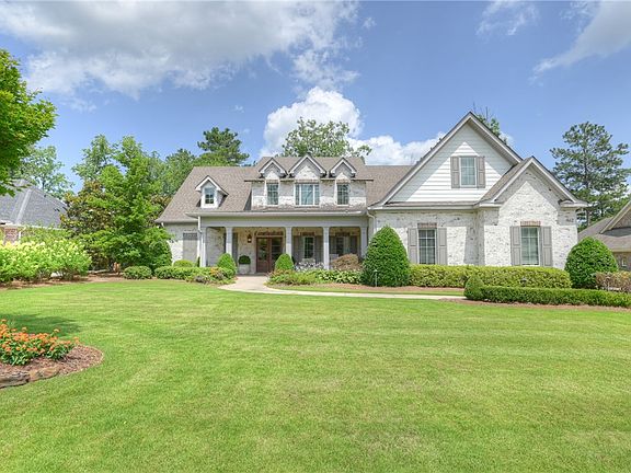 Incredible craftsmanship by Michael Allen Homes on an amazing lake front lot with so much privacy! Two bedrooms & baths on the main level. Primary suite with lovely sitting area surrounded by picture windows with lake views. Primary bath includes free standing tub, tiled step in shower, private water closet, structured closet shelving. Custom kitchen with huge center island complete with gas cooktop, warming drawer, custom vent hood, farmhouse sink, custom cabinetry, marble backsplash accented by undercabinet lighting & butlers' pantry with ice maker. Great Room features wooden accent beams in ceiling, built ins flanking the fireplace. Double French doors open to the fabulous covered porch overlooking the beautiful backyard and lake. Covered porch overflows to an open grilling deck. Second level has 4 additional bedrooms, 2 bathrooms and a bonus room that could also be used as a bedroom. Great laundry complete with large undermount sink, tons of cabinets & countertops! Just perfect!