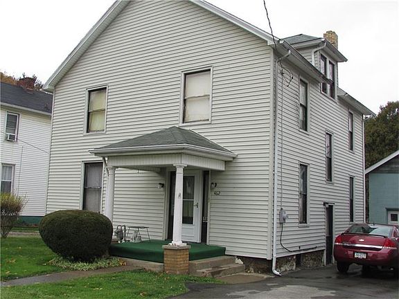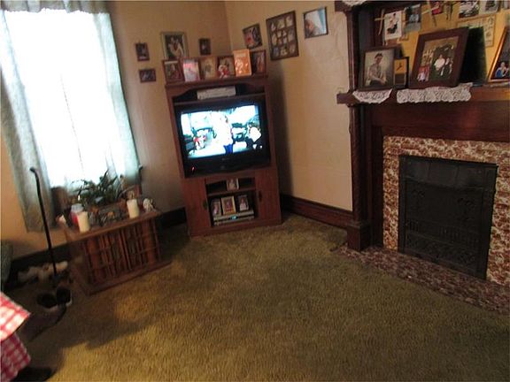 Small but cozy front porch enhances this large vinyl sided two story. With a little TLC, this will be perfect for a family. Features eat-in kitchen, formal dining room & living room, open staircase foyer with French doors to living room, 4 bedroom with nice closets, and bath on 2nd floor. Walk-up attic great for storage. Full basement. Detached garage with 2nd floor. Nice lot.
