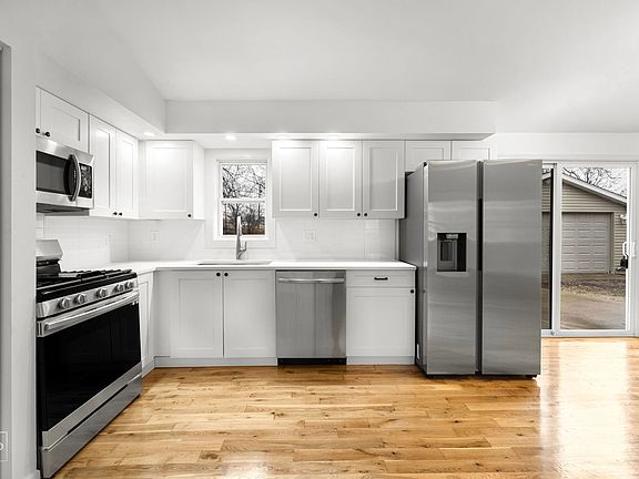 New kitchen with cabinet quartz counter tope and all stainless appliances. High ceiling in the family room. New washer and dryer. This property includes hardwood floors, four bedrooms with new carpet, new furnace, and two-car unattached garage.