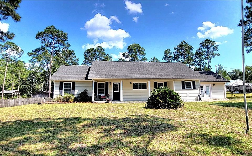FANTASTIC LOCATION, ACREAGE & SPRAWLING RANCH HOME ~ bring your horse! Approximately 2 acres with a 3 bedroom, 2 bath home over 2,000 sq ft + BONUS ROOM, separate den, private back yard with pool and fire pit area & separate 1 car garage with loft for storage. Home features include ~ hardy board siding, architectural shingled roof, split floor plan, tiled showers, large master suite with walk in closet, formal dining room, large walk in pantry room, separate laundry room and sunroom with hot tub & new LVT flooring. Home has new windows, french doors, kitchen cabinets & stainless appliances. No carpet- upgraded flooring throughout! Ceramic tile in the master bedroom, both bath rooms, 2nd bedroom, kitchen and laundry. Other living spaces have wood flooring. 2 HVAC units - the main unit & a mini split system for the large bonus room & den. Relax on the low country front porch, outback on the covered deck or take a dip in the pool to cool off. Horse pasture, pond & stable with tack room. Use of neighborhood pond is permitted as well. LOTS OF SPACE TO ENTERTAIN inside & out! Located close to I-16, Pooler, Savannah, & Statesboro - prime spot just outside of town but with a country feel.
