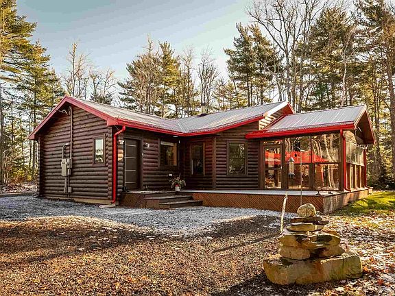 Welcome to your dream come true on Ponhook Lake! Let this open concept log home be the background for your outdoor adventures with spectacular views from every angle. The main living area boasts 2 bedrooms and one bathroom while the Secondary Suite, with it's own private entrance, has another bedroom, bath and kitchen. Easily convert to a complete 3 bedroom and 2 bathroom home or keep them separate, the choice is yours! Modern touches blend with rustic beauty to make this a place you'll never want to leave. Thoughtfully designed, bright kitchen with quartz counter tops. Worry free, year round living with well maintained roads, heat pump, wood stove and propane fueled 24 kW Generac Generator for back up. Work from home with Fibre Op high speed internet while you take in the spacious sunroom. As if that were not enough to lure you to the lake, there is an EZ Dock, detached garage for your toys and an insulated bunkie for the potential of additional guests! Enjoy lakefront living at this extraordinary property.