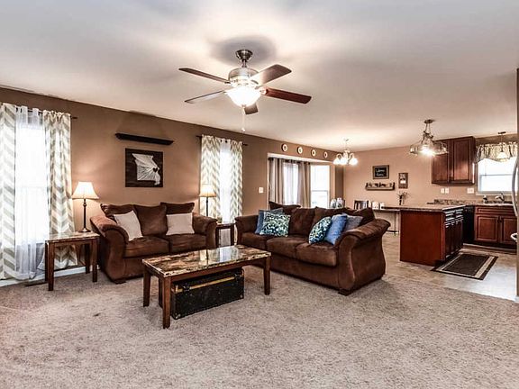 Welcome home to this darling 3 bed and 2 bath home in the popular Pevely Heights subdivision located approximately l mile from the elementary school. You will be impressed the minute you walk through the front door. There are large windows in the spacious great room that allow for plenty of natural light. The Kitchen has a center island that seats 2 and provides extra storage. There are beautiful 42" dark stained maple cabinets, designer brush nickel light fixtures & plenty of counter space. The breakfast area has space for a large dining table & comes with a bay window & door that opens to your deck. The main floor master bedroom suite has a tub & shower, solid surface counter & integral sink all in one, brush nickel light fixtures & a window for natural lighting. Two panel doors throughout & main floor laundry with extra shelving. The open staircase leads to the walk out basement with rough-in plumbing & an egress window. Privacy fence installed in 2017 & retaining wall in 2018.