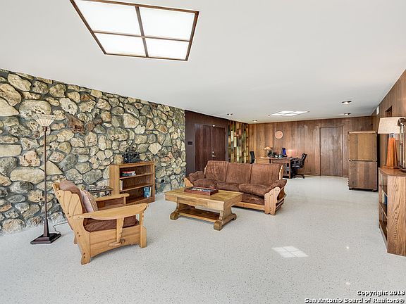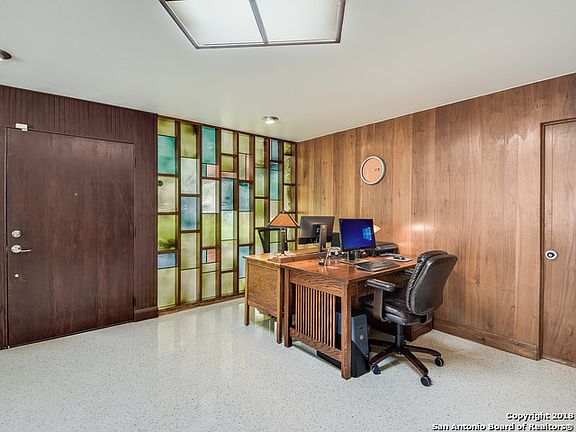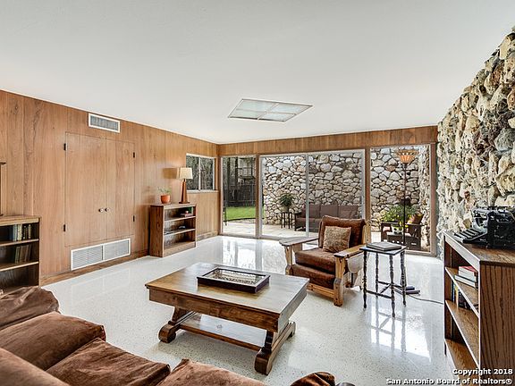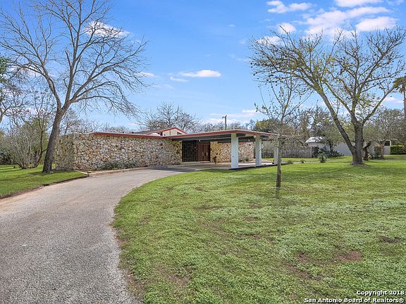 One of a kind opportunity! Authentic mid-century modern home by architect Jean Edens. Designed for clean simplicity and integration with nature, this home w/ a-port-e-cochere sits on an acre lot inside Loop 410. Flexible floorplan w/ 3 bdrms, 3 baths, & 2nd kitchen mother-in-law suite w/ separate entrance, or can be converted back to a 4 bdrm. Enjoy large glass windows, multiple patios, open floor plan, high ceilings, granite, stain glass & stone interior detailing. Beautiful terrazzo flooring throughout.