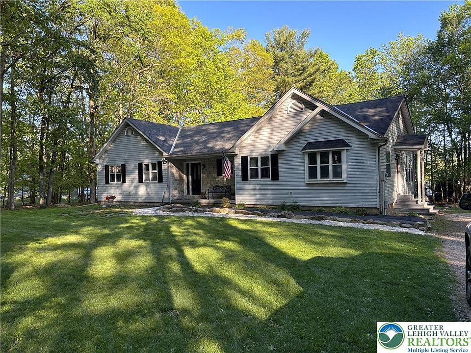 Welcome to your private retreat! This expansive 4-bedroom, 2.5-bath ranch-style home is nestled in a tranquil wooded setting, set back from the road for maximum privacy. Built in 1991 and thoughtfully updated, it blends modern comfort with timeless design.