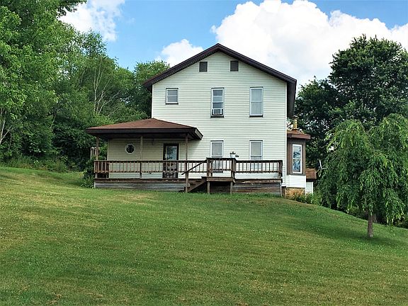 Classic century-old farmhouse situated on 4.62 acres just 1 mile from town! 3 bedrooms, 2 baths, remodeled kitchen and some hardwood floors. Multiple decks both covered and uncovered allow for great outdoor entertaining! There is plenty of room to store all your toys with the 24X28 heated 2-car detached garage w/2nd floor workshop, another 26X40 garage on the hill behind the house, eq. shed & barn