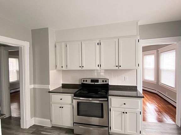 All new and renovated first-floor unit! You will find luxury laminate flooring, newly refinished white cabinets, and stainless steel appliances in the kitchen. A large pantry is located right off the kitchen for extra storage and convenience. The unit also has an expansive dining area/living room with an open concept and hardwood flooring. Both bedrooms also have hardwood floors, along with great closet space. The updated bathroom features a soaking tub with a white tiled shower surround and an updated vanity. This unit also offers first-level living convenience with your coin-operated laundry being just down the stairs. One off-street parking spot is allocated for this unit in the newly paved driveway. No pets or smoking. First/Last/Security due at signing. ALL tenants 18+ must fill out an application** The owner pays for water. The renter is responsible for gas and electricity. First/Last/Security due at signing. No pets and no smoking. One off-street parking spot. Shared coin-operated laundry is located in the basement.