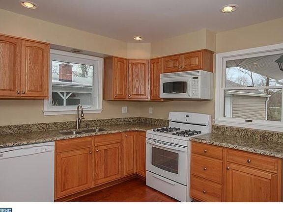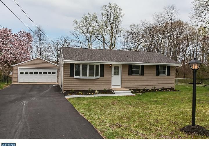 1-Story,Detached, Rancher - MOUNT LAUREL, NJ Immaculate 3 BR, 2 full bath ranch home in desirable Rancocas Woods has just been remodeled! Bruce hardwood floors adorn the LR and kitchen floors. Enjoy the open kt space with oak cabinets and granite countertops, double sink, MOEN falcet, microwave above the gas stove, DW, and broom closet that houses new hot water heater and gas heater. Large DR with bay window w/ window seat for storage, ww carpet and slate exit to back porch leading to patio, back yard and 2 car detached garage. Master BR boasts two closets and new bathroom with tub shower, new vanity and medicine cabinet. 2 other BRs w/ww carpet. Some new windows, others are Anderson, new front door, new siding, new roof and gutters, new light fixtures throughout, fresh paint throughout, recess lighting in LR and KT, laundry room w/hook ups, new insulation in attic, new plumbing and updated electric. New tar driveway. Gas heat and central air. Behind the house and pass the small woody area the creek meanders where you can enjoy water sports.