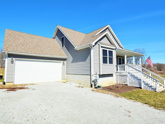 Kitchen w/a deck overlooking the large backyard to enjoy the warm evenings and/or mornings w/a great book. Utility space & 1/2bth leading to the two-car attached garage. 2nd level includes 2bdrms & full bth. Need more living space? Full unfinished walk out basement is open to finish to your likings. Public utilities (Sewer, water. natural gas, high speed internet). Just over 1 mile to the I-71/St. Rt. 61 interchange. So that the buyer can put their own touches, seller is offering a $10,000 floor allowance. Kitchen appliances included. New hot water heater & HVAC 2021